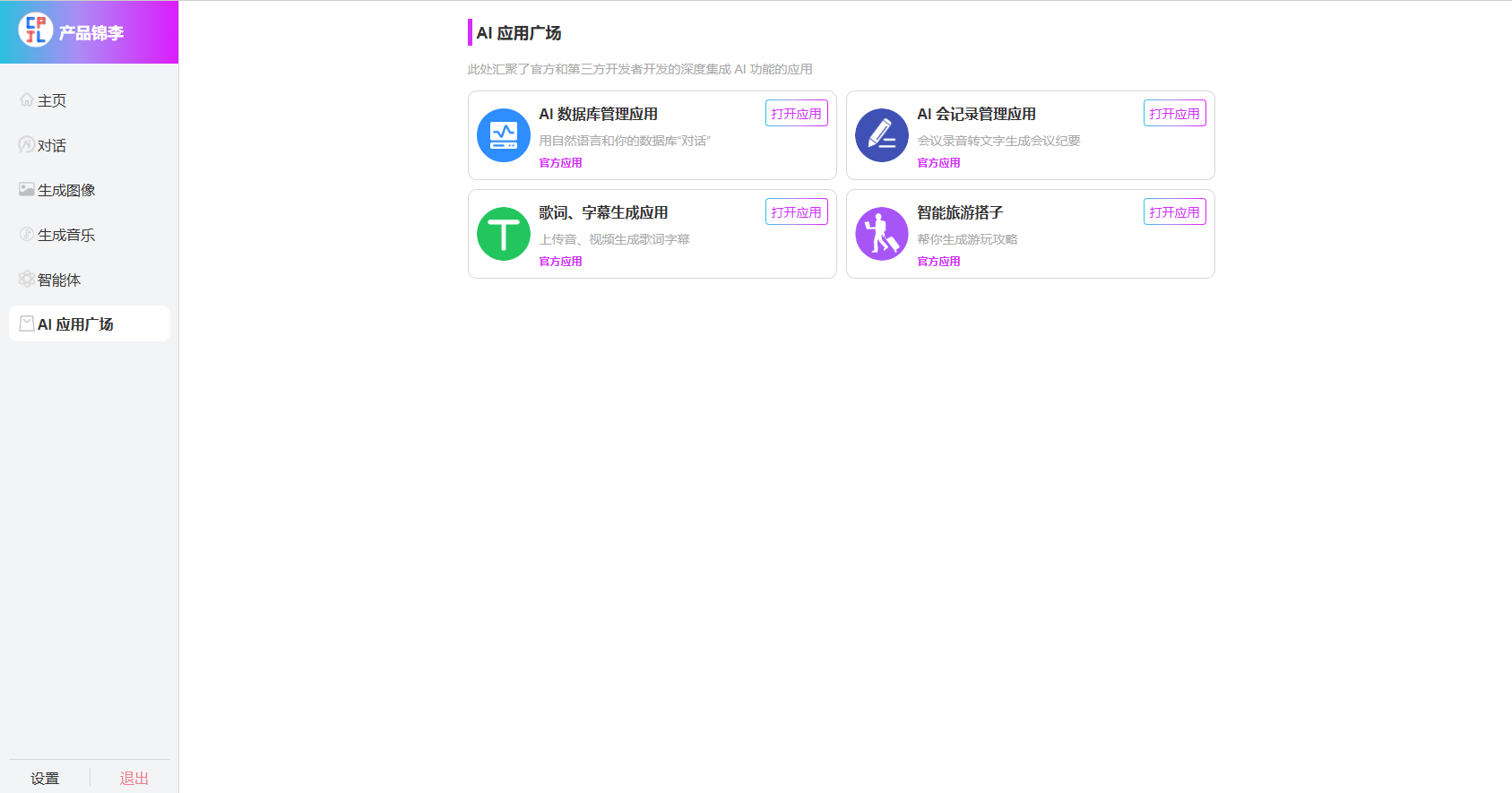 AI 应用广场,汇聚官方和第三方开发者开发的深度集成 AI 功能的应用