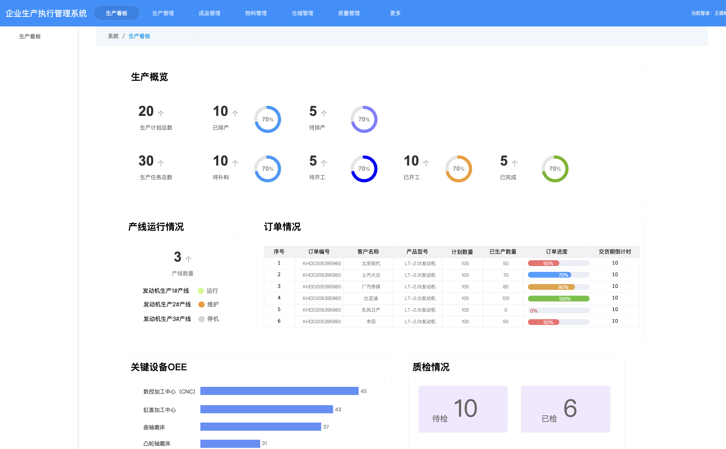 MES(制造执行系统)是连接企业计划层与生产控制层的信息化系统,实时监控生产全过程,实现生产调度、质量管理、物料追踪、设备管理等功能,提升生产效率、降低成本、确保产品质量与可追溯性。该平台会不断完善,购买一次可免费获取后续最新版本。请尊重原创,不得二次销售本原型~!!!