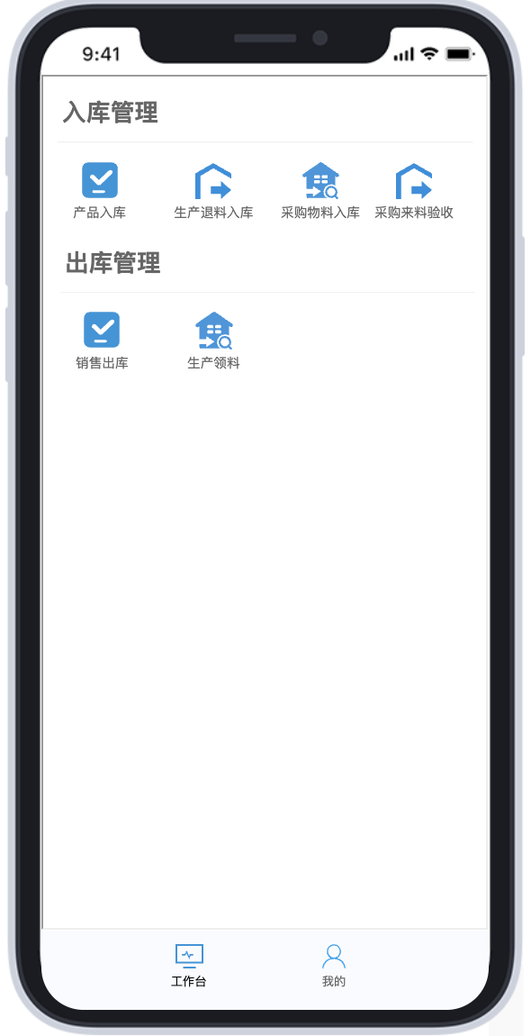 9、仓储APP(产品入库、采购来料验收、采购物料入库、生产退料入库、销售出库、生产领料)