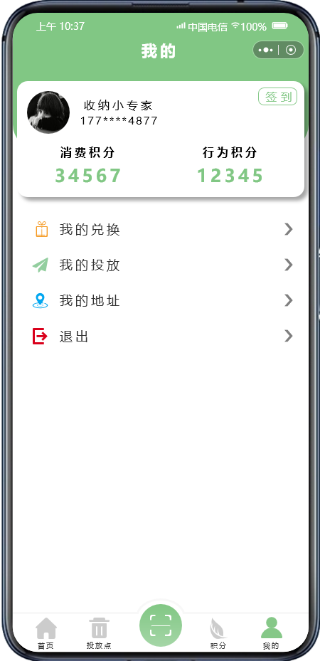 - 视觉风格:采用清新的绿色调,突出积分兑换的主题。